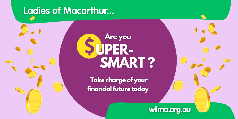 Get your head around the basics of superannuation and empower yourself to take control of your own financial future. Join WILMA’s ‘Super-Smart’ workshop/s (online or in-person) this August. Led by a registered financial adviser with expertise in women’s superannuation, the workshop will be judgement-free and free of charge.