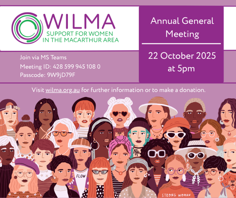 Notice is hereby given that the upcoming Annual General Meeting (AGM) of the members of WILMA – Women in the Local Macarthur Area will be held on 22 October 2025 at 5:00pm to transact the usual business.